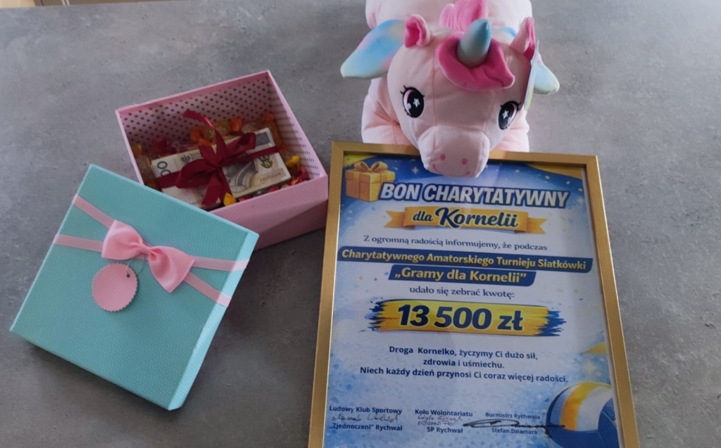 W ubiegłą niedzielę współorganizowaliśmy Charytatywny Turniej Piłki Siatkowej. Razem z Panem Burmistrzem i Siatkarzami Zjednoczeni Rychwał graliśmy dla dwuletniej Kornelii, mieszkanki Rychwała. U dziewczynki w grudniu zdiagnozowano guza mózgu i wodogłowie.